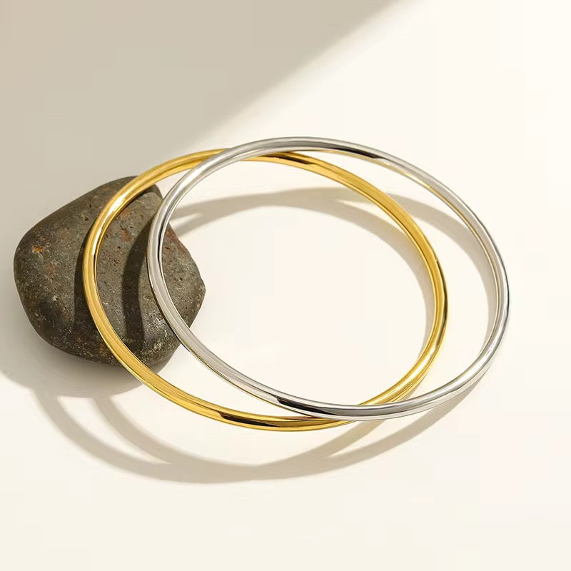 Classic Stainless Steel Round Bangle – 18K Gold or Silver Finish